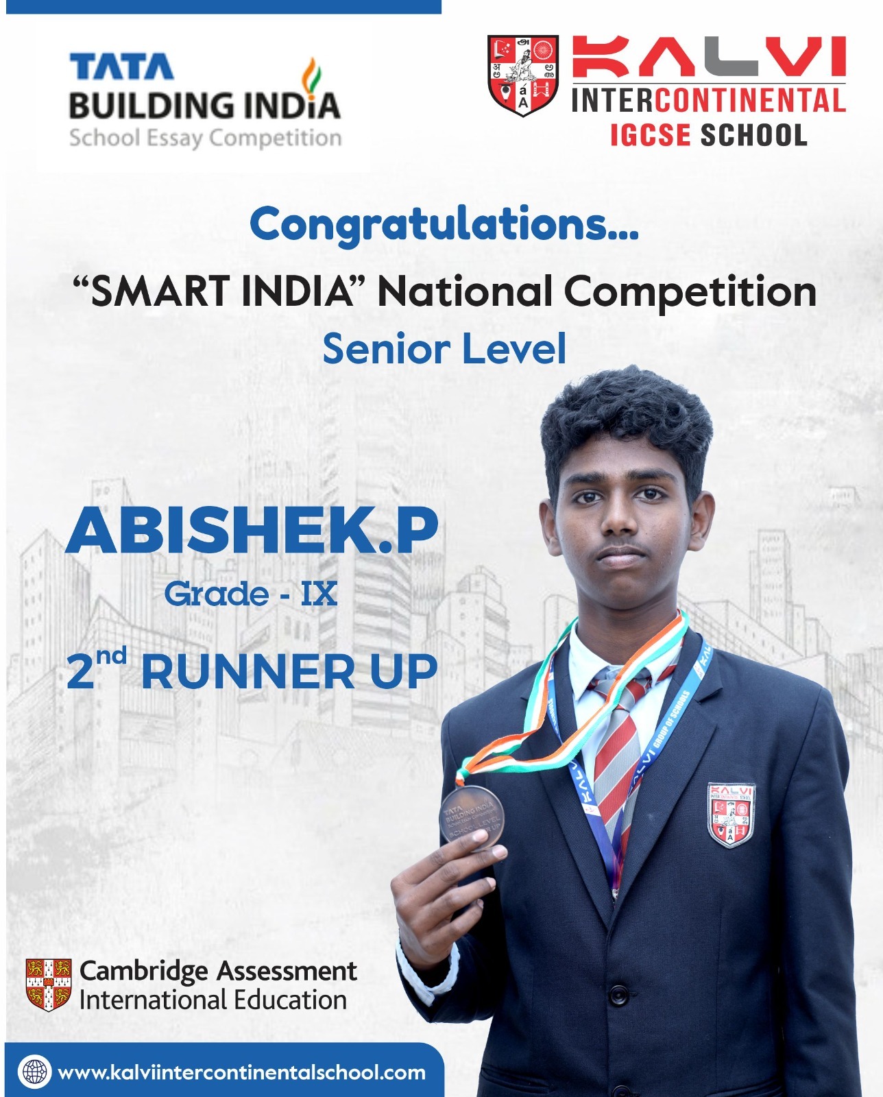 I thank Kalvi Intercontinental IGCSE School and my teachers for their support and encouragement. This achievement has inspired me to keep learning and contributing to India’s bright future!